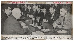 رئيس الوزراء السوفيتي نيكيتا خوروشوف في مصر، 9 مايو 1964. أثناء زيارته حضر خروشوف مراسم تحويل مجرى النيل في سياق بناء محطة أسوان الكهرمائية بمساعدة الخبراء السوڤيت وبقرض سوڤيتي. وقلد خروشوڤ الرئيس جمال عبد الناصر وسام بطل الاتحاد السوفيتي والنجمة الذهبية. |