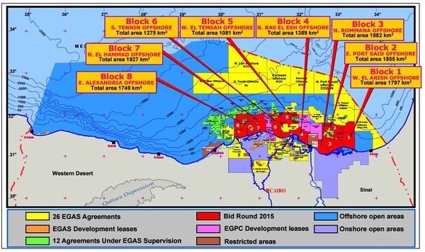 - ^ "إيجاس: 4 شركات عالمية تفوز بحقوق التنقيب عن النفط والغاز". دستور مصر. 2015-10-07. Retrieved 2015-10-07.