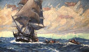 On May 15, 1602, English explorer Bartholomew Gosnold in the ship Concord[9] landed on Cuttyhunk Island while exploring New England. From there, he explored Cape Cod and the neighboring areas, including the site of present-day New Bedford. Gosnold left and settled in the Jamestown Colony of Virginia.[9]