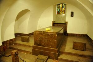 In 1924, after Poland had regained her independence, Sienkiewicz's remains were repatriated to Warsaw, Poland, and placed in the crypt of St. John's Cathedral.[31] During the coffin's transit, solemn memorial ceremonies were held in a number of cities.[31] Thousands accompanied the coffin to its Warsaw resting place, and Poland's President Stanisław Wojciechowski delivered a eulogy.[31]
