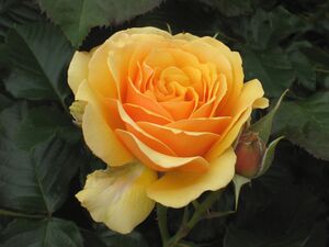 Although not officially recognized as a separate class of roses by any established rose authority, English (aka David Austin) roses are often set aside as such by consumers and retailers alike. Development started in the 1960s by David Austin of Shropshire, England, who wanted to rekindle interest in Old Garden Roses by hybridizing them with modern hybrid teas and floribundas.[14] The idea was to create a new group of shrub roses that featured blooms with old-fashioned shapes and fragrances, evocative of classic Gallica, Alba and Damask roses, but with modern repeat-blooming characteristics and the modern expanded color range as well. Austin mostly succeeded in his mission; his tribe of "English" roses, now numbering hundreds of varieties, has been warmly embraced by the gardening public and are widely available to consumers. English roses are still actively developed, with new varieties released annually. The winter hardiness and disease resistance of the classic Old Garden roses has largely been compromised in the process; many English roses are susceptible to the same disease problems that plague modern hybrid teas and floribundas, and many are not hardy north of USDA Zone 5. Examples: 'Charles Austin', 'Graham Thomas', 'Mary Rose', 'Tamora', 'Wife of Bath'.