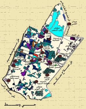 الحد الغربـــي:ش بورسعيد من مستشفى احمد ماهر مع الحدود لحى السيدة زينب حتى ميدان باب الشعرية ويجاور الحي الحدود التابعة لحـى باب الشعـريـة.