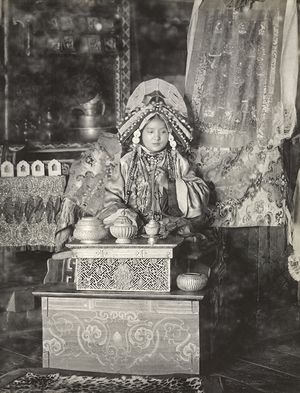 Photograph (1900) of the Maharani of Sikkim. Sikkim was under the suzerainty of the Provincial government of Bengal; its ruler received a 15-gun salute.
