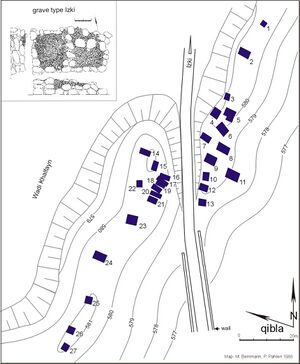 Ancient Arabian cemetery containing Late Iron Age graves on the eastern side of the Wadi Khalfayn