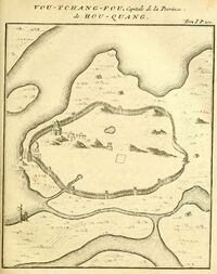 At the end of the Qing Empire, the Wuchang Prefecture (武昌府, then transcribed as 'Ou-tchang-fou') was the capital of the combined provinces of Hubei and Hunan, called the 'two Hu' or Huguang Viceroyalty. It was the seat of the provincial government of Huguang, at the head of which was a viceroy of Huguang. Next to Nanjing and Guangzhou, it was one of the most important vice-royalties in the empire.[بحاجة لمصدر]
