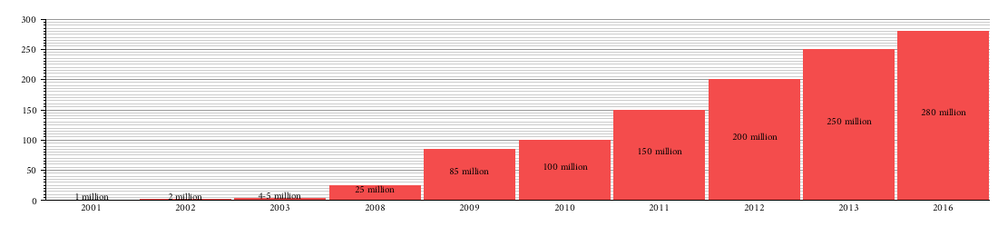 في ديسمبر 2000 بلغ حجم المعلومات المفهرسة 355.22 گيگا بايت.[47]