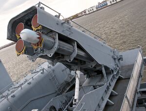 New Jersey's main battery consisted of nine 16"/50 caliber Mark 7 guns in three three-gun turrets, which could fire 2،700-رطل (1،225 kg) armor-piercing shells some 23 miles (42.6 km). Her secondary battery consisted of twenty 5"/38 caliber guns mounted in twin-gun dual purpose (DP) turrets, which could hit targets up to 9 miles (16.7 km) away. With the advent of air power and the need to gain and maintain air superiority came a need to protect the growing fleet of allied aircraft carriers, so New Jersey was fitted with an array of Oerlikon 20 mm and Bofors 40 mm anti-aircraft guns. When reactivated in 1968, New Jersey had her 20 mm and 40 mm AA guns removed and was tailored for use as a heavy bombardment ship. When reactivated in 1982, New Jersey had four twin 5"/38 caliber DP mounts removed. She was outfitted with four Phalanx Close-In Weapon System (CIWS) mounts for protection against missiles and aircraft, and eight Armored Box Launchers and eight Quad Cell Launchers designed to fire Tomahawk missiles and Harpoon missiles, respectively.[9]