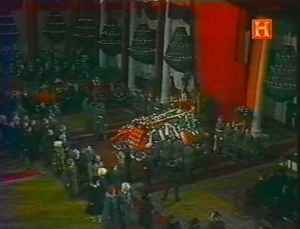 جثمان أندروبوف مسجى في مقر اتحادات الصنائع (Дом союзов)