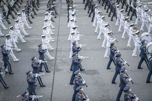 2011 | Ma Ying-jeou | Taipei | 1,000+ | The centennial event featured a skydiving show of 12 paratroopers of the Army Airborne Training Center above the plaza in front of the Presidential Office.[10] Military parade involving 1,000+ personnel, 71 aircraft and 168 vehicles.[11] On the part of the ground troops only the ROCAF Honor Guard Battalion and the ROCAF Composite Headquarters Band joined the parade on behalf of the armed forces. | |||