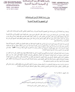 كما أدانت طائفة الأرمن البروتستانت في سورية هذا التهديد غير المسؤول