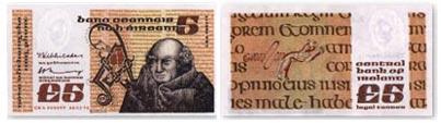 إريوجنا مُخلـَّد على ورقة نقدية أيرلندية من فئة 5 جنيهات أيرلندية، صادرة في 1976–1993.