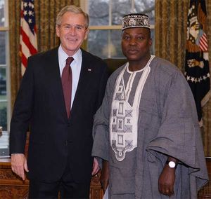 پارامانگا إرنست يونلي مع الرئيس جورج و. بوش بعد تقديم أوراق اعتماده، 22 يناير 2008