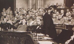 Teleki devoted a great deal of energy and political savvy to the passage of the second anti-Jewish bill, stating that he pushed it not for tactical reasons but because of his deep personal convictions.[51] During Teleki's second term in 1940, Hungarian Arrow Cross leader Ferenc Szálasi was given amnesty, and the Nazi movement became stronger.[52]