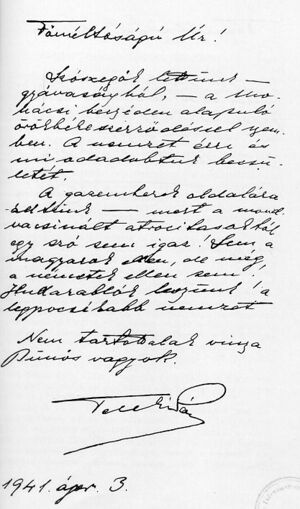 - ^ Szinai, Miklos and Laszlo Szucs, Horthy Miklos, Titkos Iratai (1965). Secret Documents of Nicholas Horthy. Budapest: Kossuth Konyvkiado. pp. 291–292.