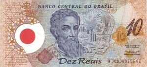 Cabral on the 10 Brazilian real polymer banknote issued in 2000, commemorating the 500th Anniversary of the discovery of Brazil