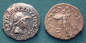 To the present day ancient drachmae are current in Barygaza, coming from this country, bearing inscriptions in Greek letters, and the devices of those who reigned after Alexander, Apollodorus [ك] and Menander.