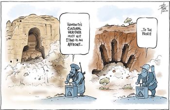 اعترفت أكبر شركة تعدين في العالم، ريو تنتو (التي تملكها عائلة روتشيلد)، بأنها في 23 مايو 2020، فجـَّرت كهفين وملاجئ صخرية عمرها 46.000 سنة للوصول إلى رواسب عالية التركيز من خام الحديد، قيمتها 135 مليون دولار في خانق جؤوكان يسكنها شعبا پؤوتو كونتي كوراما وپينيكورا من السكان الأصليين أثناء تطويرها منجم بروكمان لخام الحديد في سلسلة جبال هامرسلي، بغرب أستراليا.[2] وقد طالب المستثمرون الشركة بتحمل مسئوليتها.[3]