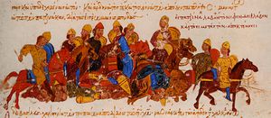 In the 12th century, according to Byzantine historian John Kinnamos, the Pechenegs fought as mercenaries for the Byzantine Emperor Manuel I Komnenos in southern Italy against the Norman king of Sicily, William the Bad.[38] A group was present at the battle of Andria in 1155.[39]