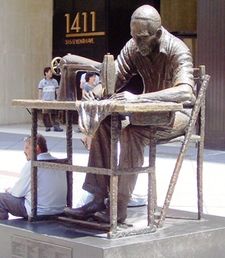 عامل صناعة ملابس، تمثال برونزي للنحات الإسرائيلي جوديث ولر.