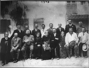 Gedera was founded in the winter of 1884 by members of the Bilu group, to the south of Qatra.[10] Gedera was established on a tract of village land purchased for the Biluites by Yechiel Michel Pines of the Lovers of Zion from the French consul in Jaffa, Poliovierre.[11][12] The first pioneers arrived at the site during the festival of Chanukah. In 1888, Benjamin and Mina Fuchs built Gedera's first stone house, later used as a Bnai Brith meeting house.[13] In 1912, a group of Yemenite immigrants settled in Gedera. During the British Mandate, Gedera became a popular resort due to its mild climate and fresh air.
