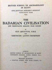 - ^ Brunton, G. and Caton-Thompson, G,C. The Badarian Civilisation and Predynastic Remains Near Badari. London: British School of Archaeology in Egypt.