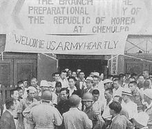 افتتاح اللجنة التحضيرية للتعمير الوطني (كوريا) (1945). الصورة لفرع جيدورو.