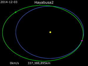 صورة متحركة لمدار هايابوسا 2 من 3 ديسمبر 2014 حتى 29 ديسمبر 2019