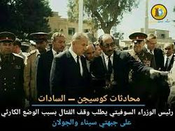 - وصل رئيس وزراء الاتحاد السوڤيتي ألكسي كوسيگن إلى القاهرة في زيارة غير معلنة هدفها إقناع أنور السادات بأن الوقت حان للعمل على وقف اطلاق النار. كان الرجلان يلتقيان كل يوم. وقد أنكر السادات أن مصر تواجه صعوبات في الجبهة، وقلل من خطر عبور الإسرائيليين إلى الضفة الغربية لقناة السويس. ولكي يقنع كوسيگن الرئيس المصري بعكس ما يقول عرض عليه صورا فوتوغرافية التقطتها الأقمار الصناعية السوفيتية. وحاول المصريون أن يطوقوا القوات الإسرائيلية التي عبرت القناة، إلا أنهم لم يفلحوا.