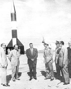 الرئيس جمال عبد الناصر أثناء إطلاق الصاروخ الظافر. يوليو 1962، من اليمين: عبد الوهاب البشري، كان نائب وزير الحربية لشئون الانتاج الحربي، حسن ابراهيم، رئيس المؤسسة الاقتصادية، الفريق صدقي محمود قائد القوات الجوية، المشير، الرئيس، اللواء عصام خليل مدير المخابرات الجوية والمسئول عن صناعات الطيران والصواريخ، عبد اللطيف بغدادي.
