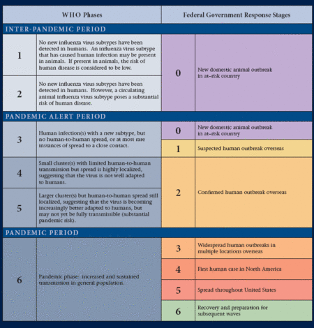 في مايو 2009 ، قررت منظمة الصحة العالمية رفع مستوى الانذار الى الدرجة الرابعة على سلم من ست درجات ما يعني "ارتفاعا ملحوظا" في خطر انتشار مرض انفلونزا الخنازير. ويعكس هذا القرار خشية خبراء المنظمة الدولية من أن يظهر الفيروس قدرة على الانتقال من إنسان إلى إنسان حسبما يقول المعلقون.