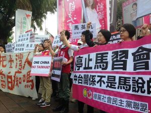 في 7 نوفمبر 2015، التقى رئيس جمهورية الصين الشعبية، شي جنپنگ ورئيس تايوان ما يينگ-جيوو في سنغافورة.[1] كان هذا هو اللقاء الأول بين زعيمي تايوان والصين (البر الرئيسي) منذ نهاية الحرب الأهلية الصينية (الثورة الشيوعية الصينية) في 1949.[2] تم الافصاح عن تفاصيل اللقاء في الصحيفة التايوانية ليبرتي تايمز في 3 نوفمبر 2015[3] وتم التأكدي عليه في الأيام اللاحقة.