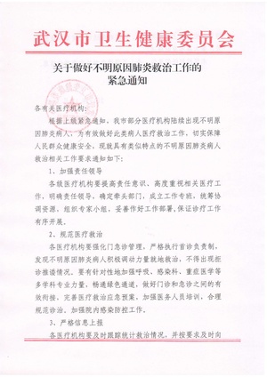 One of the earliest Wuhan MHC notices about the pneumonia epidemic. It was first posted on Weibo on 30 December 2019 and was confirmed by Wuhan CDC the next day (31 December).
