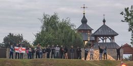 Protesters near a church in Minsk (12 August)