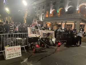 The protests continued the next days, and the Georgian Parliament enforced red level of security on 2 May to ensure the safety amid the clashes and what it called an attack on the Parliament building by the opposition.[137] The same day the protesters besieged the Parliament building and faced off the police stationed inside the parliament's courtyard. The riot police had to use the tear gas, water cannons, and pepper spray to disperse the protesters.[138] The next day, the protesters organized a rally at the Paragraph Hotel which was hosting an annual meeting of the Asian Development Bank, during which the one protester was detained for verbally insulting the police,[139] while on 9 May, Tbilisi Police Department reported arresting six people during the clashes a day before.[140]