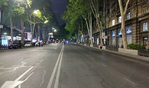 An estimated 50,000 protesters gathered and marched through the central Tbilisi prior to the beginning of third hearing of the bill, on 11 May.[141][142][143] Protesters marched to the capital's Europe Square holding Georgian and European flags, chanting "no to the Russian law".[144] The same day seven opposition parties — Ahali, United National Movement, Lelo, Girchi – More Freedom, Droa and Strategy Builder — issued a joint statement, saying that the bill would be unacceptable no matter how much revised, calling the parliamentary majority to scrap the bill altogether.[145] On 12 May, Protesters said that they would stay overnight as third hearing of the bill in the Legal Affair Committee was scheduled for the next day. The road leading to the Parliament building through the Rustaveli Avenue was blocked.[146]