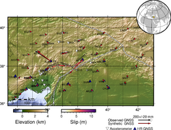 خريطة الهزات الرئيسية والهزات الارتدادية بشدة MW 4.0 أو أكبر[54]