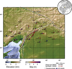 100. ^ "Deprem bölgesiyle ilgili çarpıcı tespit: Yer kabuğu 7.3 metre kaydı" [Striking finding about the earthquake zone: The earth's crust recorded 7.3 meters] (in التركية). Sözcü. 15 February 2023. Retrieved 15 February 2023.