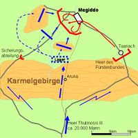 - 1457 ق.م. - الفرعون تحتمس الثالث، من الأسرة الثامنة عشر، بمصر القديمة، يهزم أمير قادش في معركة مگدو ويبدأ في حصار مدينة مگدو. (التأريخ حسب تقويم إبرز المبني على البزوغ الشروقي للشعرى اليمانية.)