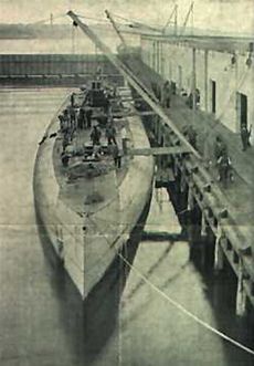 الغواصة الألمانية فارضة الحصار دويتشلاند (غواصة هاندلز) تصل بلتيمور (1916). صورة ملتقطة في نيو لندن، كنتيكت.
