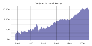 مؤشر داو جونز الصناعي يصل أوطى مستوى له في الكساد الكبير وهو 40.56 (1932). وكان ذلك 1/9 تحت 381.17 المسجلة في 3 سبتمبر 1929