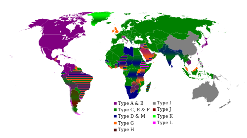 - ^ أ ب Type letters are from the International Electrotechnical Commission (IEC) Web site[2] that provides classification letters similar to a United States Department of Commerce publication[3] that sees widespread but not universal use to differentiate plug and socket types based on rough mechanical compatibility. Most common household plugs have an associated letter.