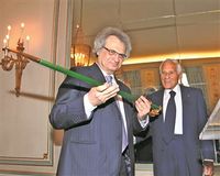 أمين معلوف يتسلم سيف الشرف في حفل انضمامه للأكاديمية الفرنسية، 15 يونيو 2012.