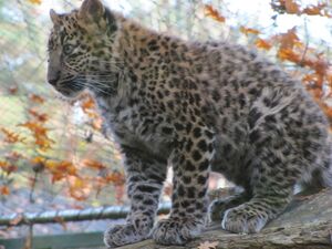 The names 'Amurland leopard' and 'Amur leopard' were coined by Pocock in 1930, when he compared leopard specimens in the collection of the Natural History Museum, London. In particular, he referred to a leopard skin from the Amur Bay as 'Amur leopard'.[9] Since at least 1985, this name has been used for the leopard subspecies in eastern Siberia and for the captive population in zoos worldwide.[10][11]