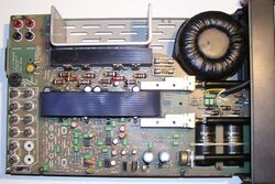 An audio power amplifier (or power amp) amplifies low-power electronic audio signals, such as the signal from a radio receiver or an electric guitar pickup, to a level that is high enough for driving loudspeakers or headphones. Audio power amplifiers are found in all manner of sound systems including sound reinforcement, public address, home audio systems and musical instrument amplifiers like guitar amplifiers. It is the final electronic stage in a typical audio playback chain before the signal is sent to the loudspeakers.