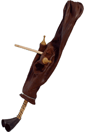 القِرَب Bagpipes هي woodwind instrument using enclosed reeds fed from a constant reservoir of air in the form of a bag. The Great Highland bagpipes are well known, but people have played bagpipes for centuries throughout large parts of Europe, Northern Africa, Western Asia, around the Persian Gulf and northern parts of South Asia.