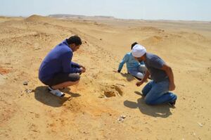 ملف:أعمال الحفر في صحراء منخفض الفيوم قبيل العثور على جمجمة الباستيتدون، 2020.