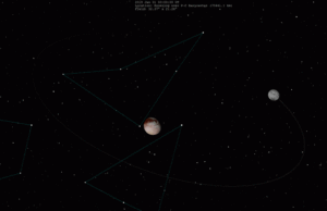When binary minor planets are similar in size, they may be called "binary companions" instead of referring to the smaller body as a satellite.[3] Good examples of true binary companions are the 90 Antiope and the 79360 Sila–Nunam systems. Pluto and its largest moon Charon are sometimes described as a binary system because the barycenter (center of mass) of the two objects is not inside either of them, but Charon is small enough compared to Pluto that it is usually classified as a moon.[4] The Sun and Jupiter orbit a point outside of either, but are not considered a binary because they are different kinds of objects.