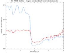 - ^ Clark, R. N. (1981-04-10). "Water frost and ice: the near-infrared spectral reflectance 0.65–2.5 μm". Journal of Geophysical Research. 86 (B4): 3087–3096. Bibcode:1981JGR....86.3087C. doi:10.1029/JB086iB04p03087. Retrieved 2010-03-03.
