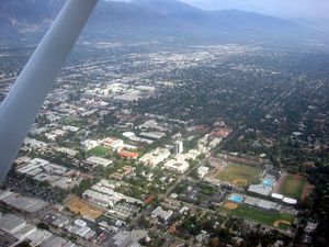 Caltech has six academic divisions with strong emphasis on science and engineering, managing $332 million in 2011 in sponsored research.[13] Its 124-acre (50 ha) primary campus is located approximately 11 mi (18 km) northeast of downtown Los Angeles. First-year students are required to live on campus, and 95% of undergraduates remain in the on-campus House System at Caltech. Although Caltech has a strong tradition of practical jokes and pranks,[14] student life is governed by an honor code which allows faculty to assign take-home examinations. The Caltech Beavers compete in 13 intercollegiate sports in the NCAA Division III's Southern California Intercollegiate Athletic Conference (SCIAC).