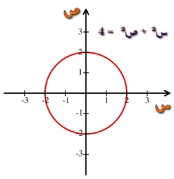 صورة. 2 - نظام الإحداثيات الديكارتي والدائرة ذات الشعاع 2، ومركزها نقطة الأصل. معادلة الدائرة هي س² + ص² = 4